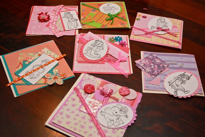 My Best friend Kelly's sisters were also invited to the party. Kelly and I helped the girls and did not make cards ourselves!