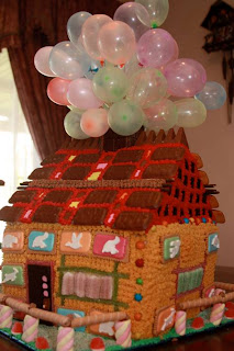 For the finished house my mother bought 50 helium balloons and we ended up using all 50 balloons to let the house lift from the ground!